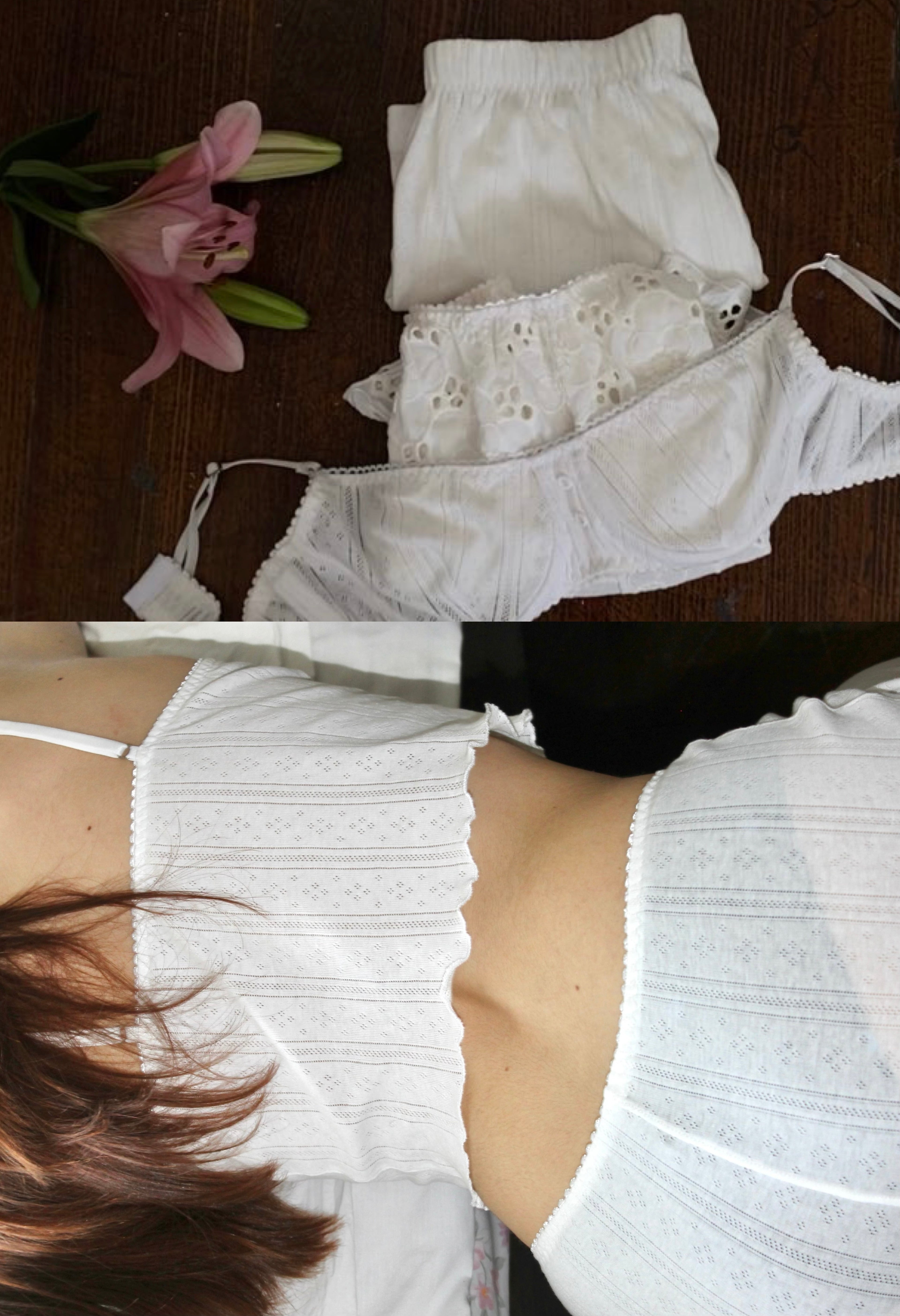 Pijama tira bordada blanca