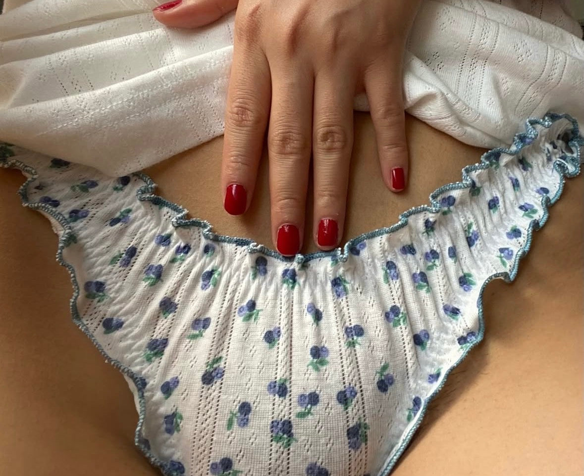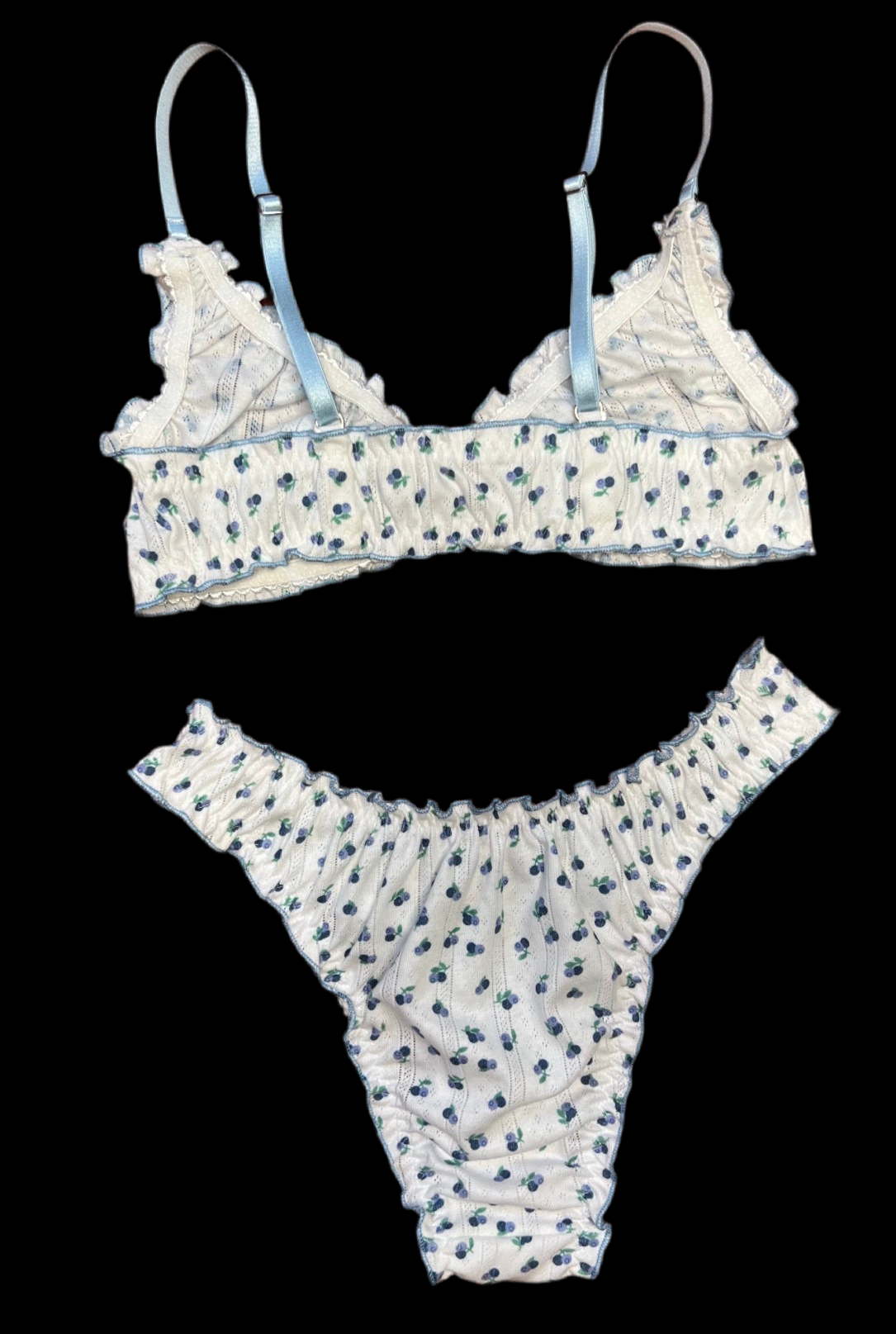 Ruffle set hecho de algodón orgánico con estampado de blueberries.
